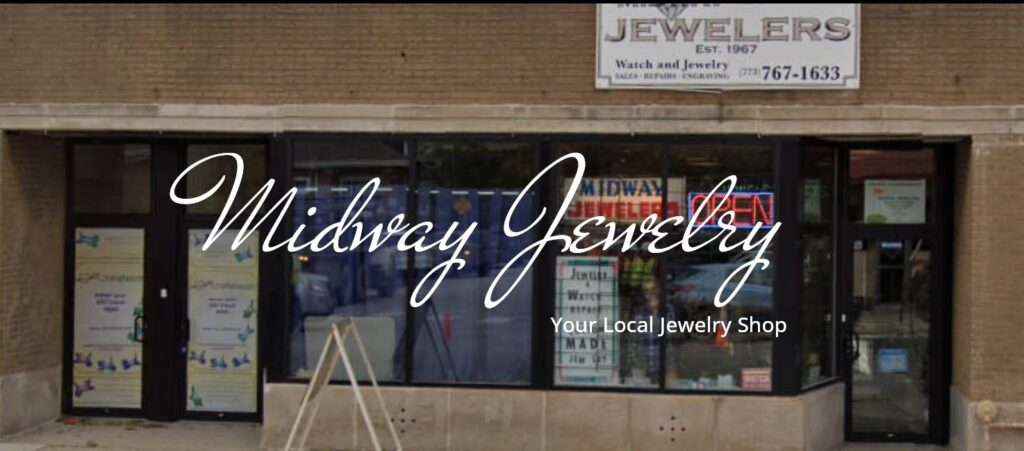 Midway Jewelry, located in the Clearing Neighborhood of Chicago (near Midway Airport) for over 40 years. Visit us for very special engagement rings, wedding bands, jewelry, rings, pendants, necklaces, bracelets, earrings, birthstones and more. We also repair jewelry, repair watches and change watch batteries. We are one of the few clock repair stores in the area! We are an old fashioned jewelry store that does repairs on-site. We are nothing like the high pressure mall stores many associate with jewelry shopping. Stop in and look around. Come back for a 2nd look. We are happy to meet you!
